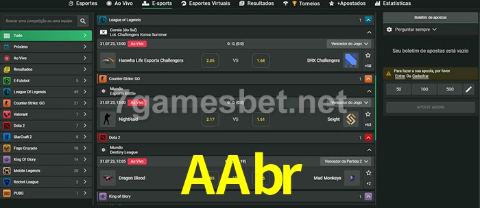 A aposta AAbr oferece aos jogadores a experiência mais conveniente de apostas em eSports!